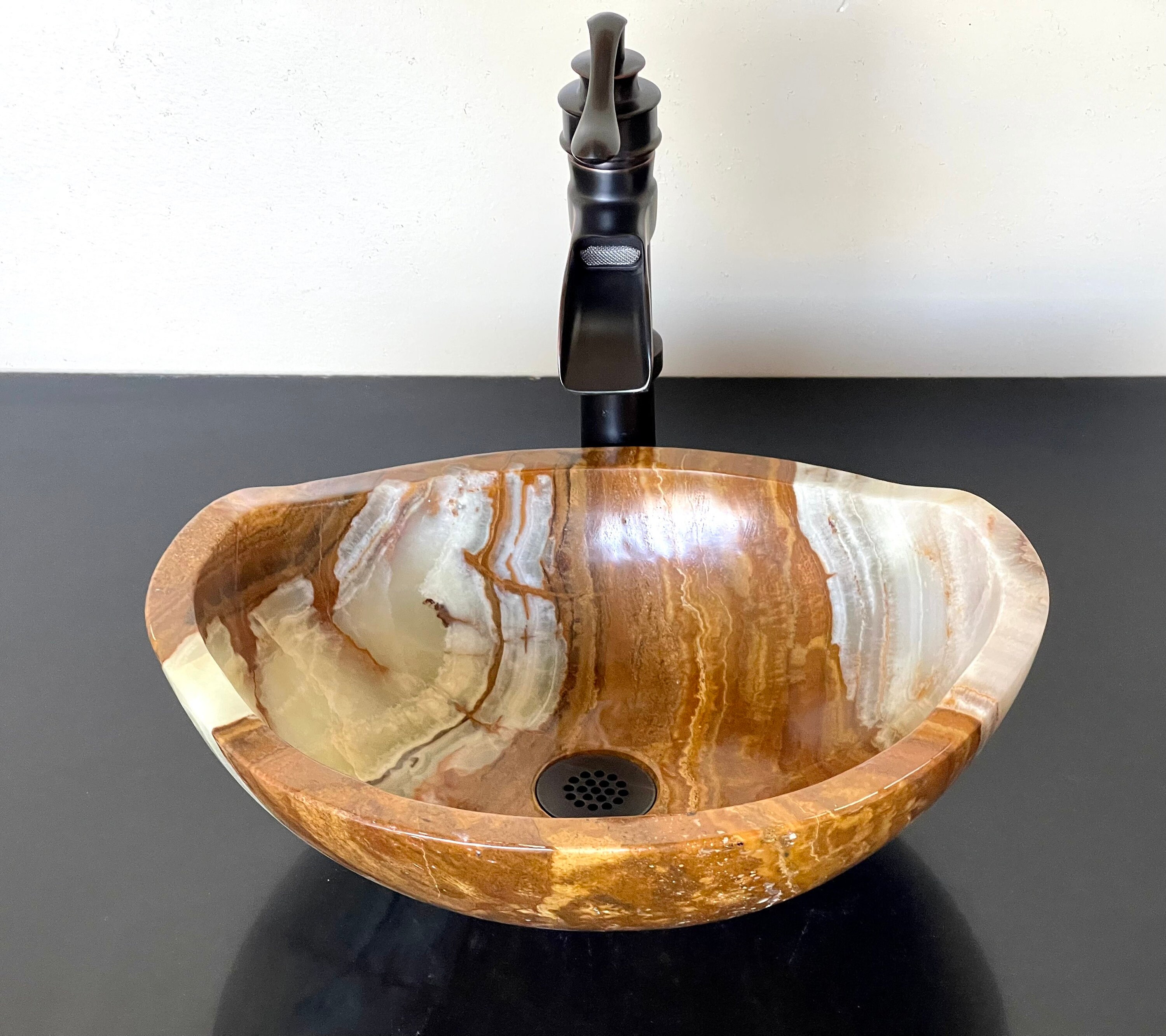 HANDCRAFTED ONYX STONE VESSEL SINK FOR BATHROOM