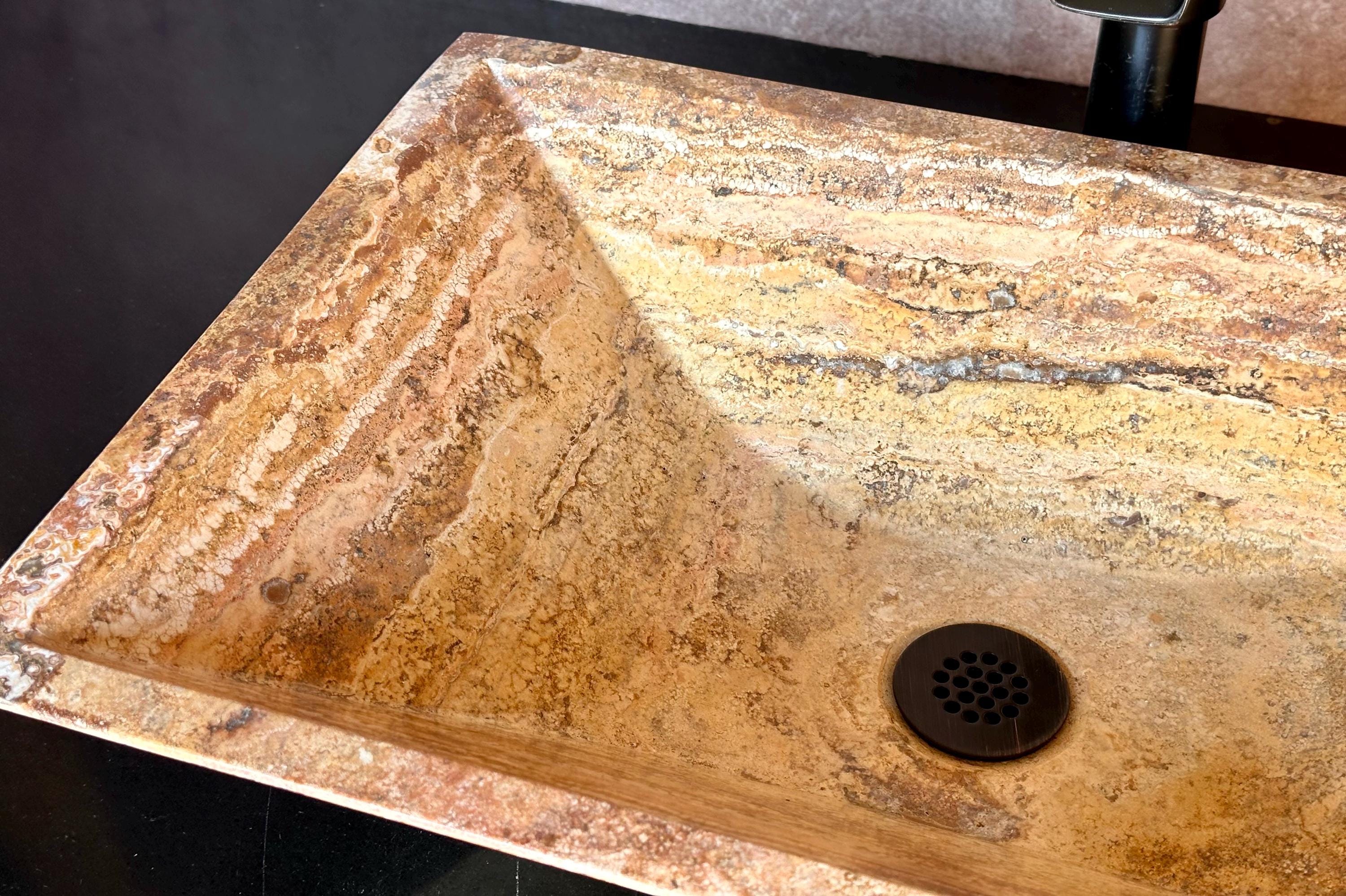 Give your bathroom a stylish and modern look. Travertine marble is a natural stone with variations in colors and veins, which allow us to consider each sink a natural work of art.